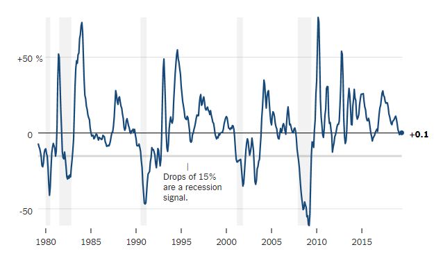 – Sentimiento del consumidor: descensos del 15 por ciento o más a lo largo de un año es una señal peligrosa. Los consumidores impulsan la economía, ahora más que nunca y es prácticamente imposible para la economía seguir creciendo si los estadounidenses deciden mantener sus billeteras cerradas. Indicadores como Conference Board y la Universidad de Michigan brindan información sobre cómo gastarán los consumidores en el futuro. Los índices de confianza son volátiles de un mes a otro y, a veces, disminuyen drásticamente a medida que los consumidores reaccionan (y reaccionan de forma exagerada) al mercado bursátil, los acontecimientos políticos y otros eventos. Esas disminuciones a menudo no se traducen en cambios reales en el gasto. Pero los descensos sostenidos son otro asunto. Morgan Stanley descubrió que una caída del 15 por ciento año tras año en el índice Conference Board es un factor fiable para predecir una recesión.