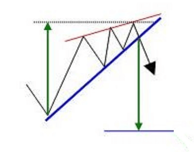 Aquí tiene otro gran ejemplo de cuña ascendente y cómo se activa la señal de cambio de tendencia cuando el precio la rompe hacia abajo.