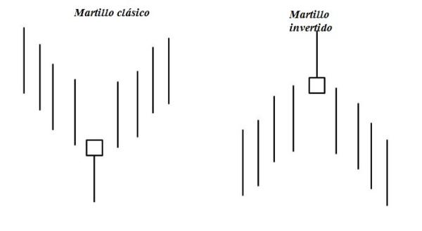Martillo invertido: es un patrón que aparece en la fase final de una tendencia bajista.