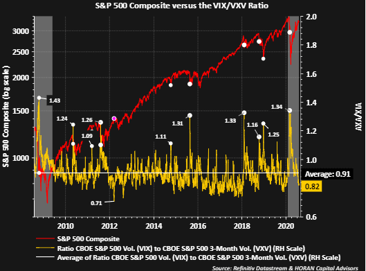 - Si divide el VIX entre el VXV obtendrá un número. Si es mayor de 1 implica incertidumbre y es malo para la Bolsa.