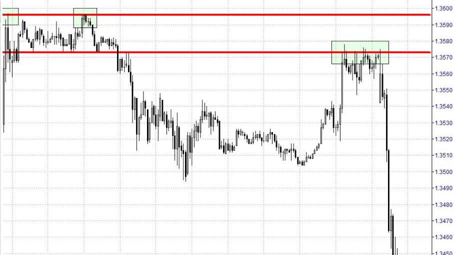 En el siguiente gráfico tenemos un ejemplo de la estrategia doble pivote, pero en este caso con dos resistencias que están cerquita una de la otra. Por un lado tenemos la primera resistencia en la parte izquierda del gráfico y por otro lado la segunda resistencia en la parte derecha del gráfico.